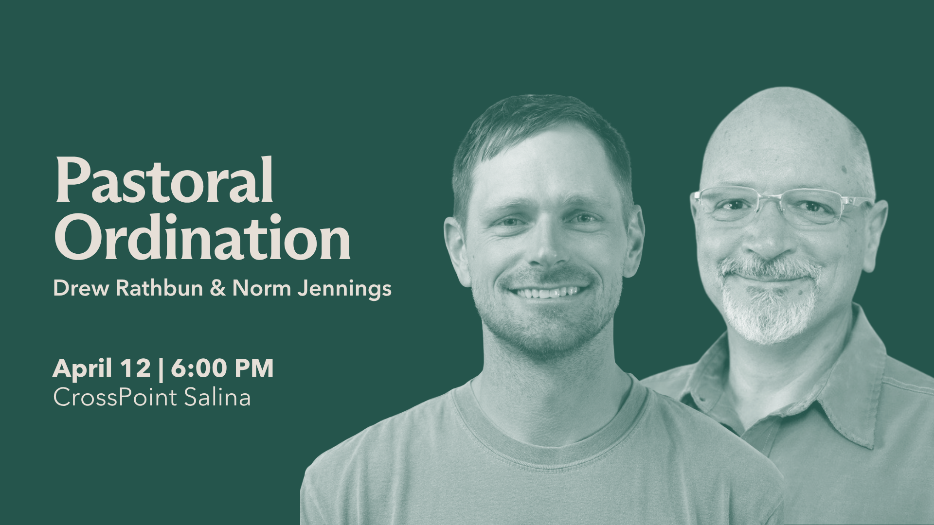 We invite you to a meaningful time to celebrate, affirm God’s calling, and pray over Drew Rathbun and Norm Jennings as they are ordained as Associate Pastors of Care.